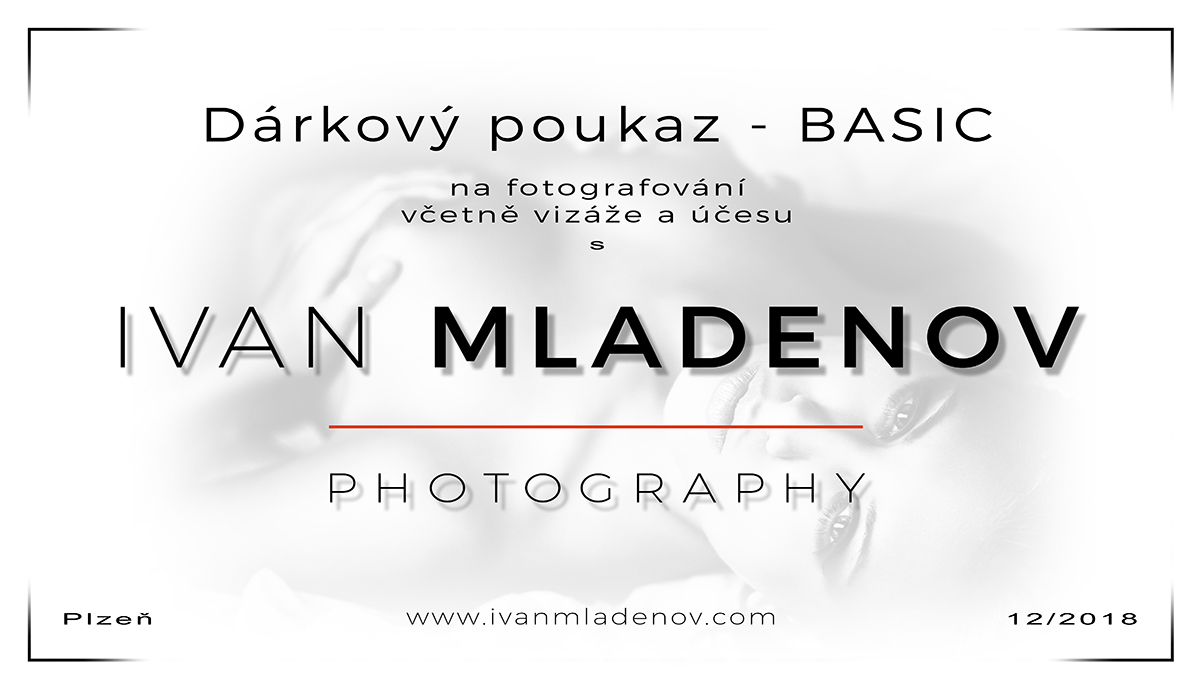Zahrnuje vizáž, účes a samotné focení v ateliéru (případně po domluvě i mimo něj). Z neupravených náhledů si lze vybrat 5 fotografií, které po úpravách a retuši obdržíte v elektronické podobě  v barevné i černobílé variantě, obojí v tiskovém i webovém rozlišení. Dárkový poukaz lze převzít osobně, nebo zaslat poštou, či e-mailem.  Platnost 1 rok. Cena: 4 500,- Kč.